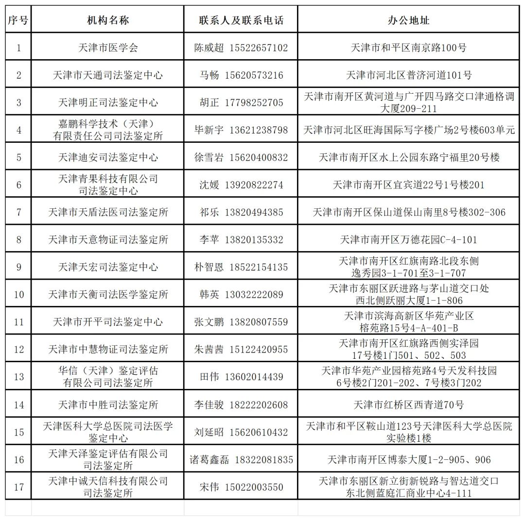 2024年天津法院建設工程造價、建設工程質量、資產(chǎn)評估、會計審計、醫(yī)療損害鑒定評估機構名錄